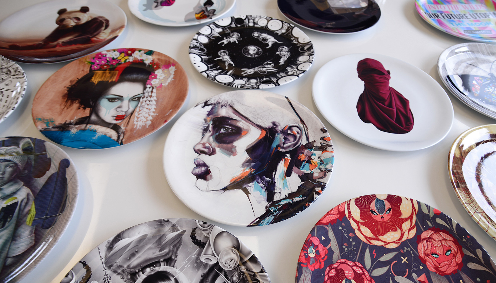 Für ein exklusives Dinner von Urban Nation gestalteten internationale Künstler:innen limitierte Teller. Jedes Stück ein Unikat – als verbindendes Element zwischen Kunst, Begegnung und globalem Austausch.